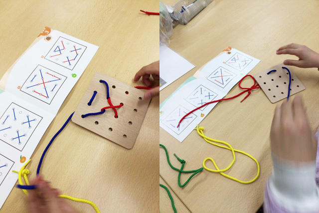 楽しいキャラクターや文字、図形などを使って脳の中の空間認識力を伸ばしていきます。この能力が磨かれていくと、図形の展開図などが頭の中でイメージできるようになります。